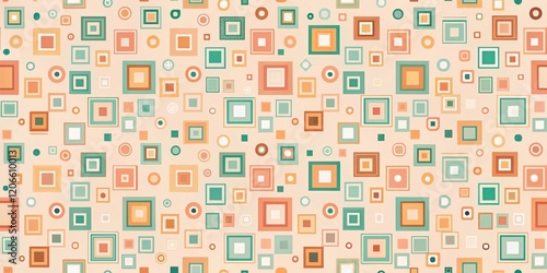 The watermark will not be included on Wall mural.: Abstract geometric pattern featuring diverse square and circle shapes in muted tones