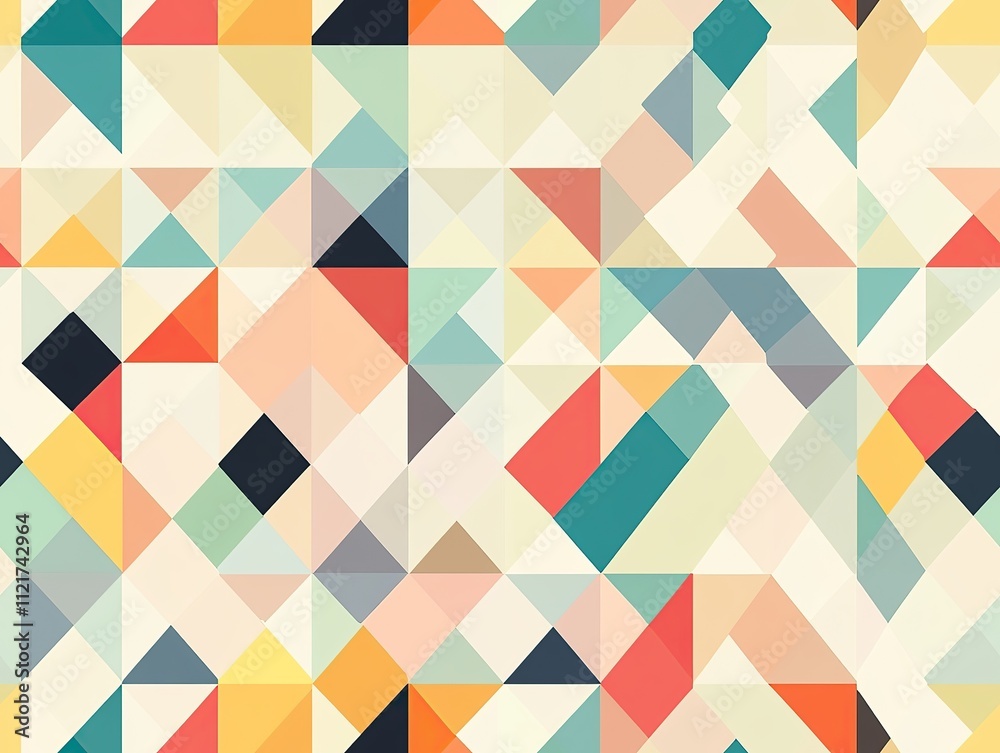 Wall mural : Abstract geometric pattern with colorful triangles and squares on a white background -