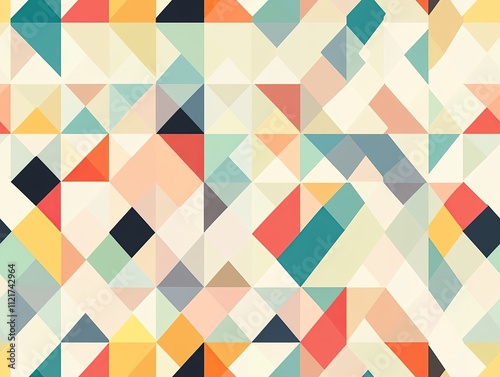 The watermark will not be included on Wall mural.: Abstract geometric pattern with colorful triangles and squares on a white background -