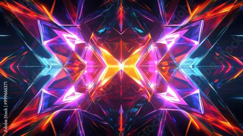 The watermark will not be included on Wall mural.: Abstract geometric pattern with sharp angles and bright neon colors, creating a dynamic and energeti