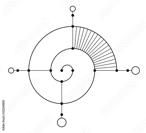 Wall mural abstract geometric round symbol, solated on white background. black linear shapes with points in the