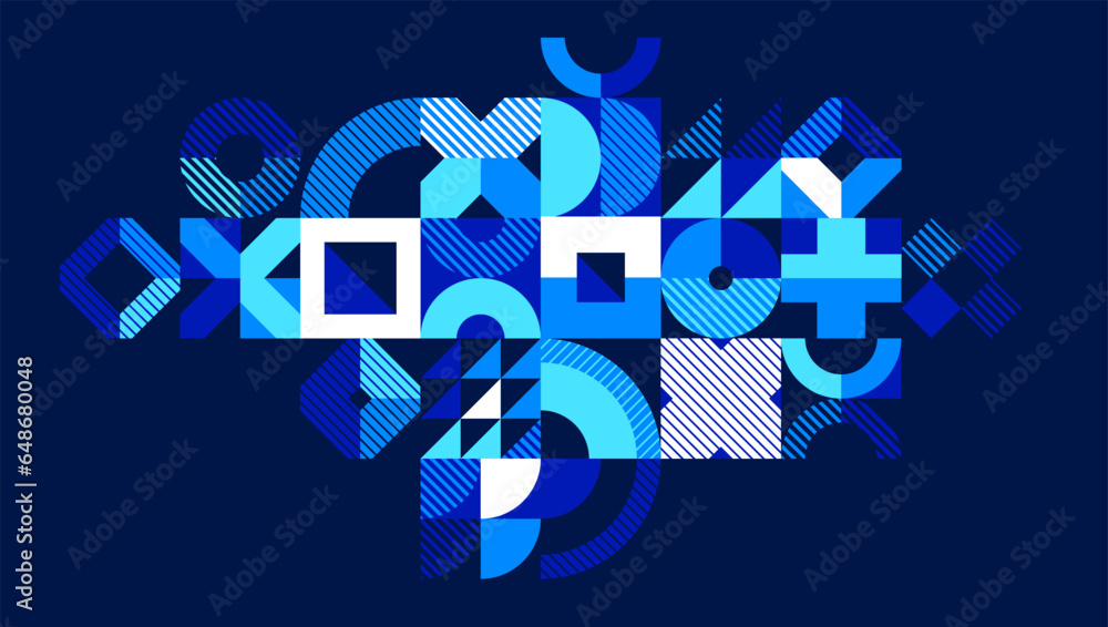 Wall mural abstract geometric stripy vector background over dark, linear shapes of circles and triangles patter