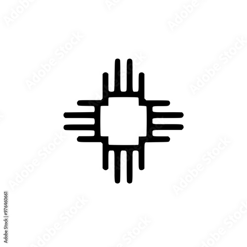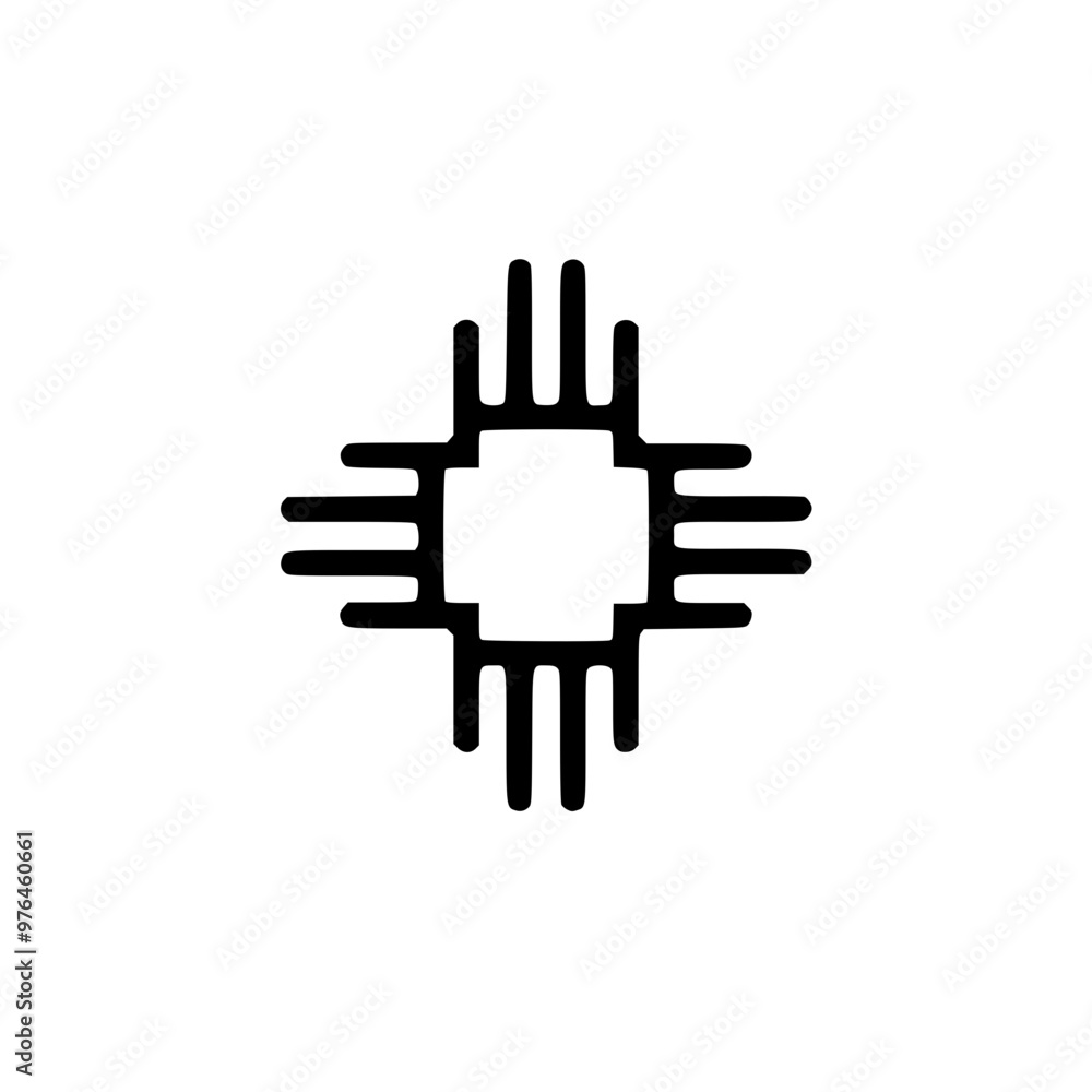 The watermark will not be included on Wall mural.: Abstract geometric symbol with six straight lines extending from a central square -