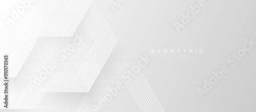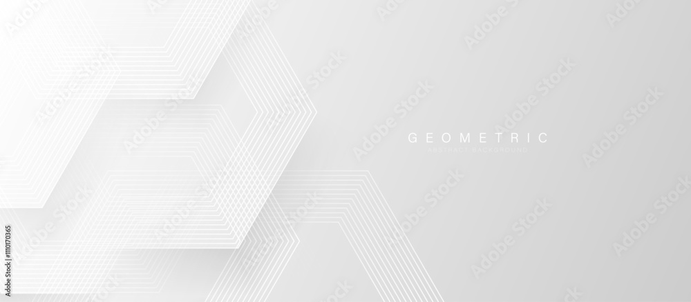 Wall mural abstract geometric white background with linear hexagonal pattern