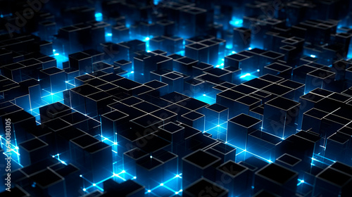 Wall mural : Abstract geometrical shape background with blue illuminated connecting lines over the rough surface,