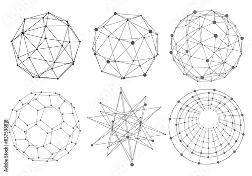Wall mural : Abstract geometry shapes collection - platonic solid design - connected lines with dots - medical, tech