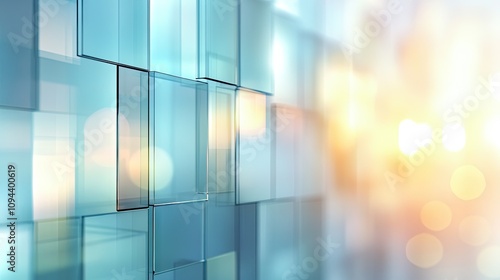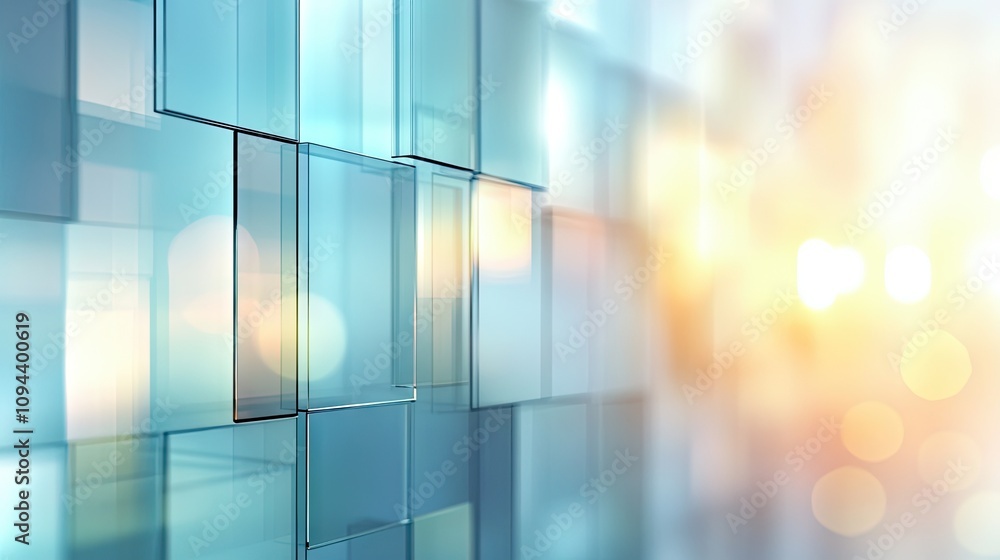 The watermark will not be included on Wall mural.: Abstract glass panels create a cool and modern aesthetic with soft bokeh lights in the background -