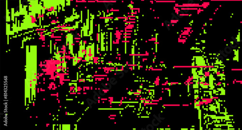 The watermark will not be included on Wall mural.: Abstract glitchy background with random pixel noise - vector illustration in green and black colors -