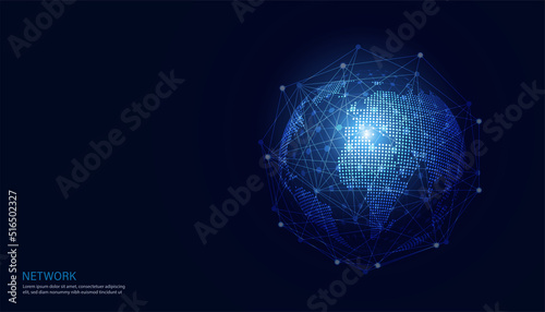 Wall mural : Abstract global dot network circle digital connection and communication futuristic on blue backgroun