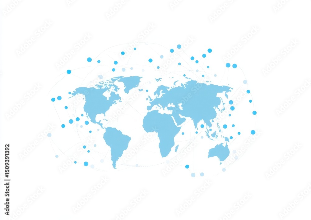 Wall mural abstract global network concept with a blue world map on a white background technology and connectiv - Wall murals Wall mural abstract global network concept with a blue world map on a white background technology and connectiv - Wall murals