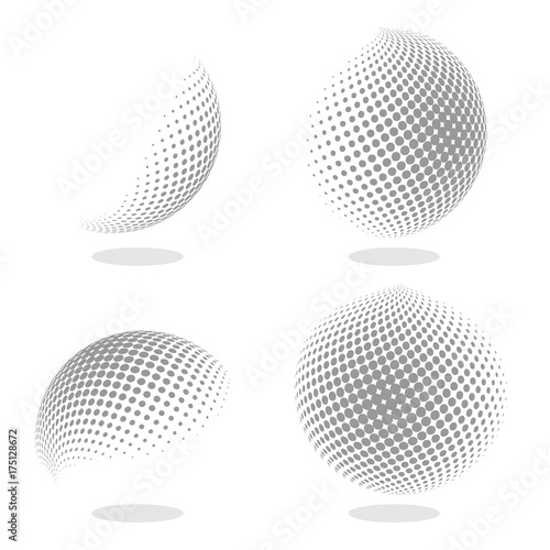 Wall mural abstract globe dotted sphere. 3d halftone effect vector background. black and white set of vector il - Wall murals Wall mural abstract globe dotted sphere. 3d halftone effect vector background. black and white set of vector il - Wall murals
