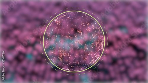 Wall mural abstract globe in triangular network connections flickering on blurred pink dots background. - Wall murals Wall mural abstract globe in triangular network connections flickering on blurred pink dots background. - Wall murals