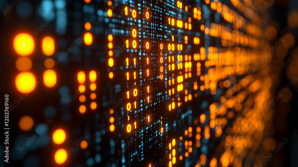 The watermark will not be included on Wall mural.: Abstract glowing binary code stream digital background