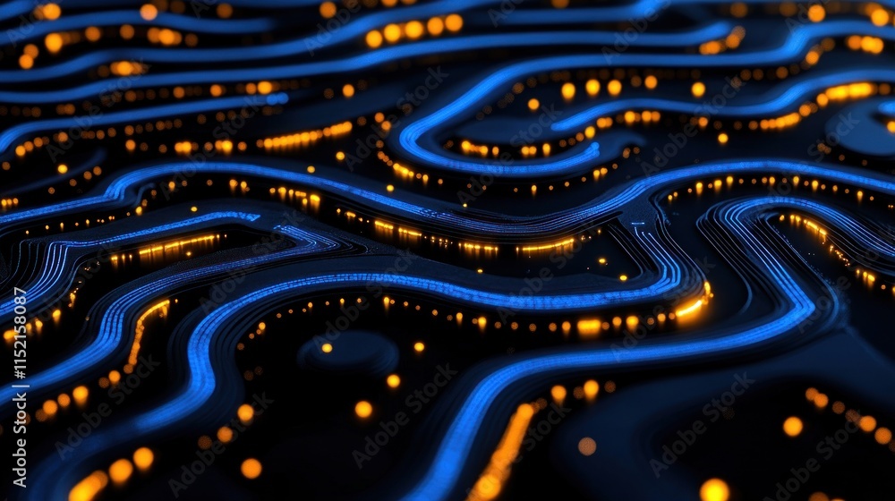 The watermark will not be included on Wall mural.: Abstract glowing blue and orange lines forming a complex network pattern -