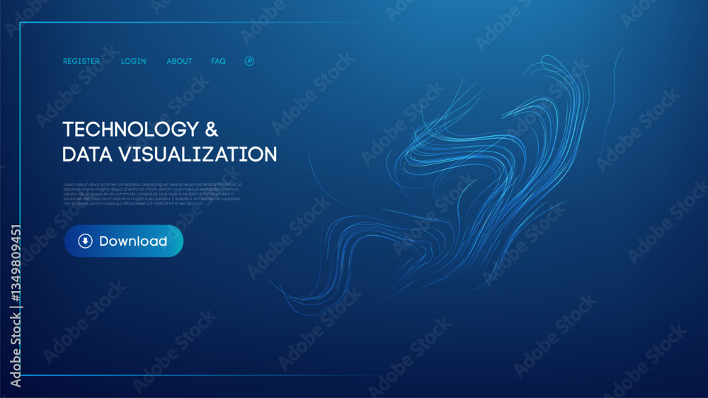 The watermark will not be included on Wall mural.: Abstract glowing blue lines illustrating technology and data visualization concepts
