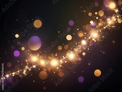 The watermark will not be included on Wall mural.: Abstract glowing golden bokeh lights and bubbles creating a magical and festive atmosphere