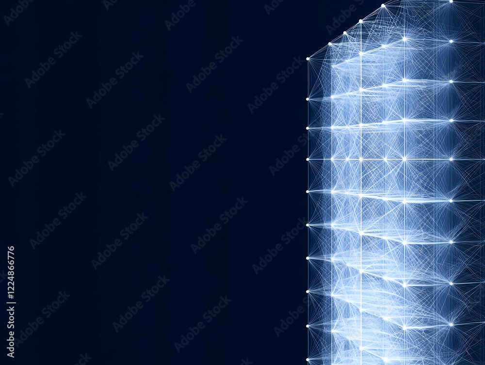 Abstract glowing grid structure creates a futuristic design on dark backgroundWall mural