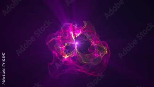 Wall mural abstract glowing looped light hi-tech energy violet golden sphere atom blob of energy from lines and
