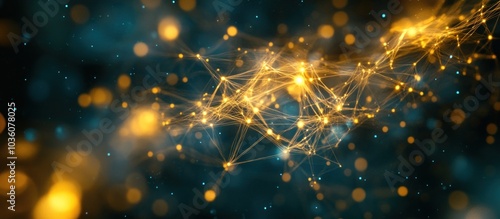 Wall mural abstract glowing network of connected dots and lines in a dark blue background.