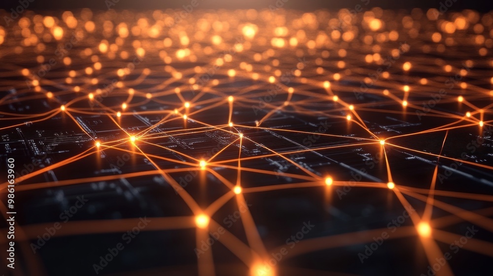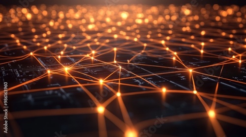 Wall mural : Abstract glowing network of lines and dots on a dark background -