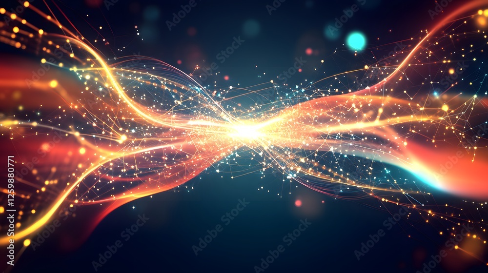Wall mural abstract glowing network with connected points and flowing energy