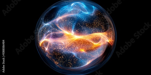 Wall mural abstract glowing orb with blue and orange energy swirling inside a transparent sphere against a blac