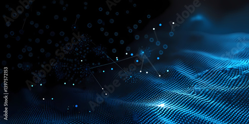 Wall mural abstract glowing particle connections on wavy surface - Wall murals Wall mural abstract glowing particle connections on wavy surface - Wall murals