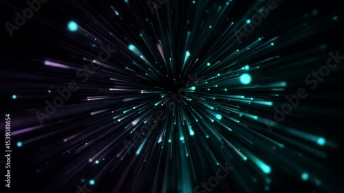 Wall mural : Abstract glowing particles radiate in space creating futuristic light effects -
