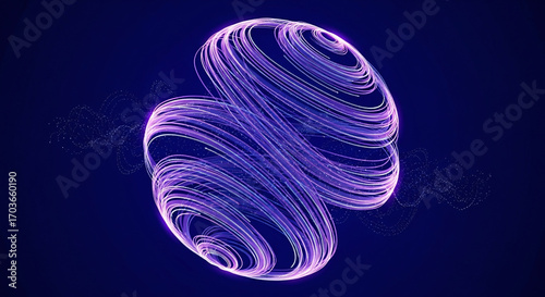 Wall mural : Abstract glowing purple and blue lines form a dynamic spherical shape, creating a futuristic and