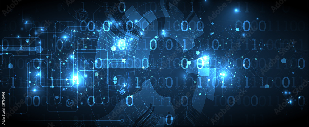 Wall mural abstract glowing technology background. communication concept. template for science presentation. ve