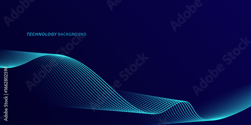 Wall mural abstract glowing wave lines on dark blue background. dynamic wave pattern. modern flowing wavy lines