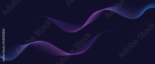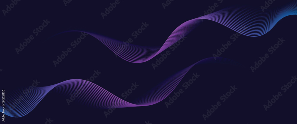The watermark will not be included on Wall mural.: Abstract glowing wave lines on dark blue background - dynamic wave pattern - modern flowing wavy lines