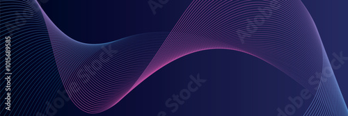Wall mural abstract glowing wave lines on dark blue background. dynamic wave pattern. modern flowing wavy lines