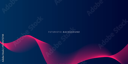 Wall mural abstract glowing wave lines on dark blue background. dynamic wave pattern. modern flowing wavy lines