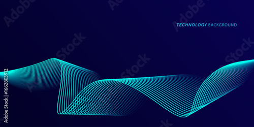 Wall mural abstract glowing wave lines on dark blue background. dynamic wave pattern. modern flowing wavy lines