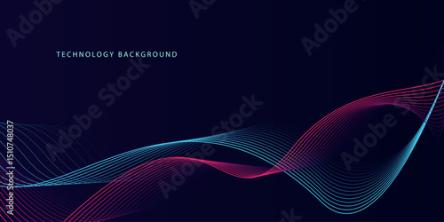 Wall mural abstract glowing wave lines on dark blue background. dynamic wave pattern. modern flowing wavy lines