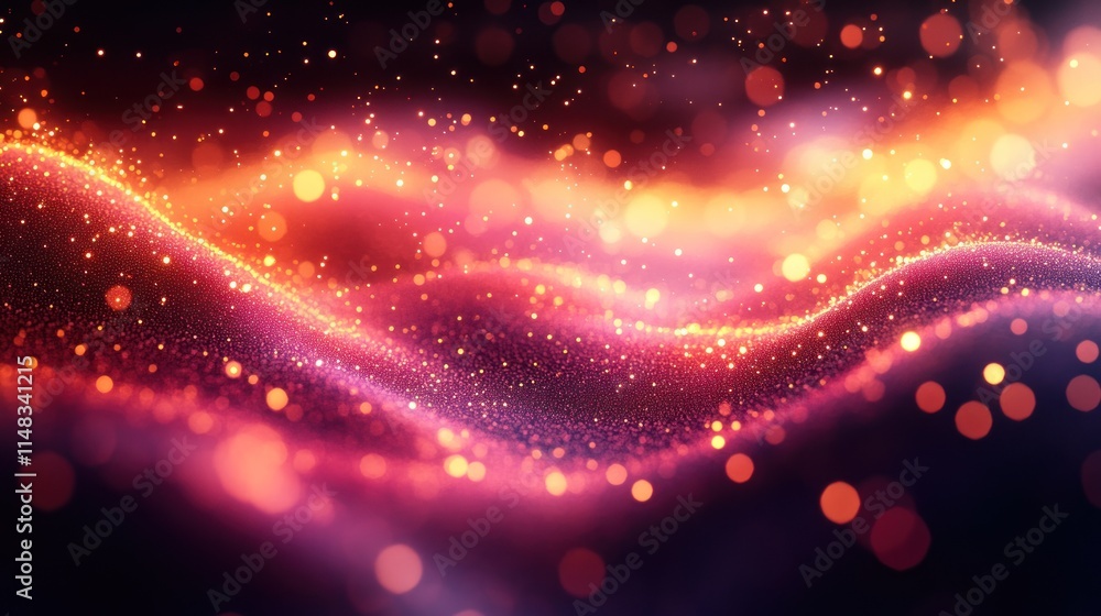 Wall mural abstract glowing wave of particles with bokeh lights. - Wall murals Wall mural abstract glowing wave of particles with bokeh lights. - Wall murals