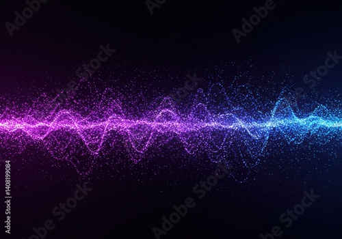 Wall mural : Abstract glowing wave of particles with purple and blue gradient on a dark background design element