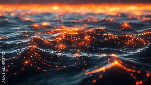 Wall mural abstract glowing waves with network connections. - Wall murals Wall mural abstract glowing waves with network connections. - Wall murals
