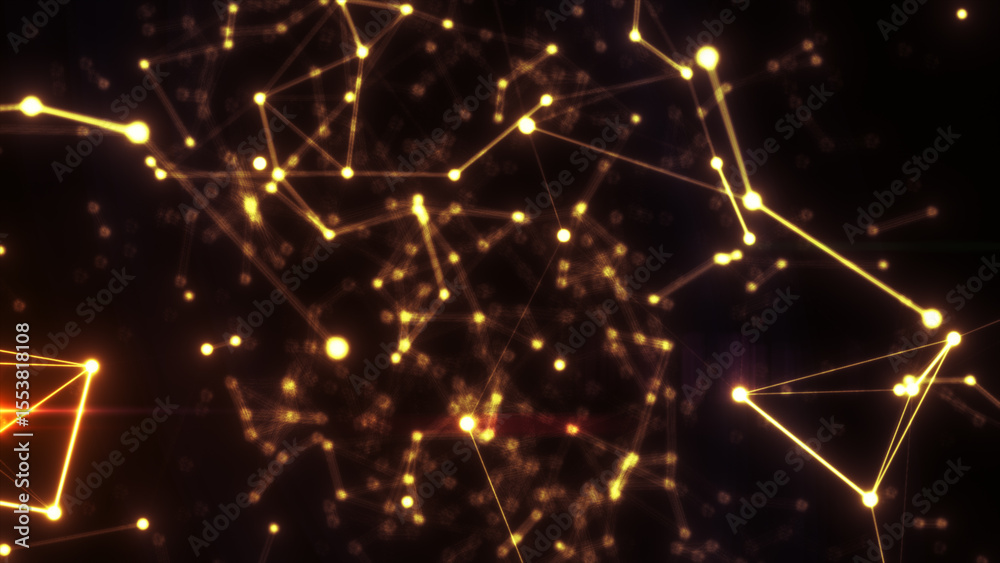 Wall mural abstract glowing yellow network of connected nodes and lines on a dark background, symbolizing data