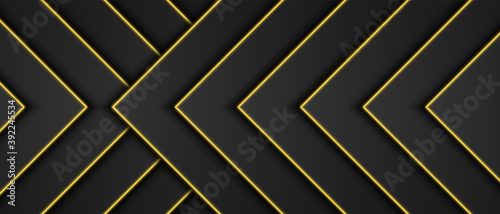 Wall mural abstract gold metallic, black frame background, triangular overlap layer with yellow light line, arr