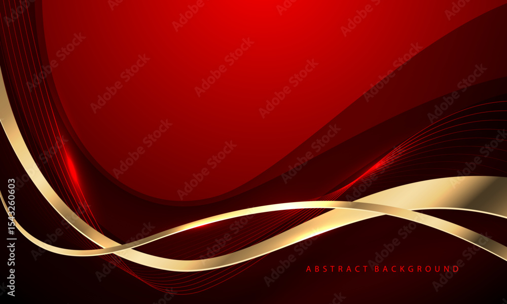 The watermark will not be included on Wall mural.: Abstract gold ribbon curve overlap on red luxury background vector