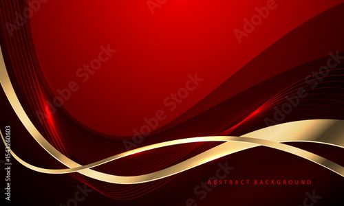 Wall mural abstract gold ribbon curve overlap on red luxury background vector