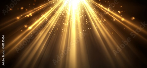 Wall mural : Abstract golden background with light rays and glowing lines on a dark brown backdrop -