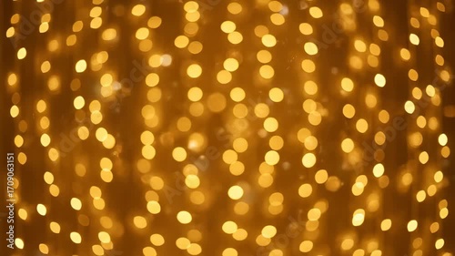 Wall mural : Abstract golden bokeh shimmering lights creating a dense, sparkling curtain effect, a seamless and l