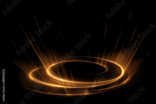 The watermark will not be included on Wall mural.: Abstract golden circle light effect on black background