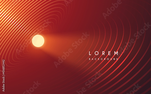 Wall mural : Abstract golden circle lines with glow effect on red background