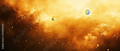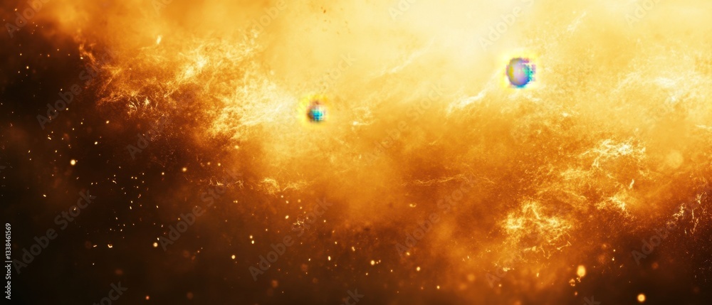 The watermark will not be included on Wall mural.: Abstract golden energy background with glowing particles and intricate patterns creating a celestial