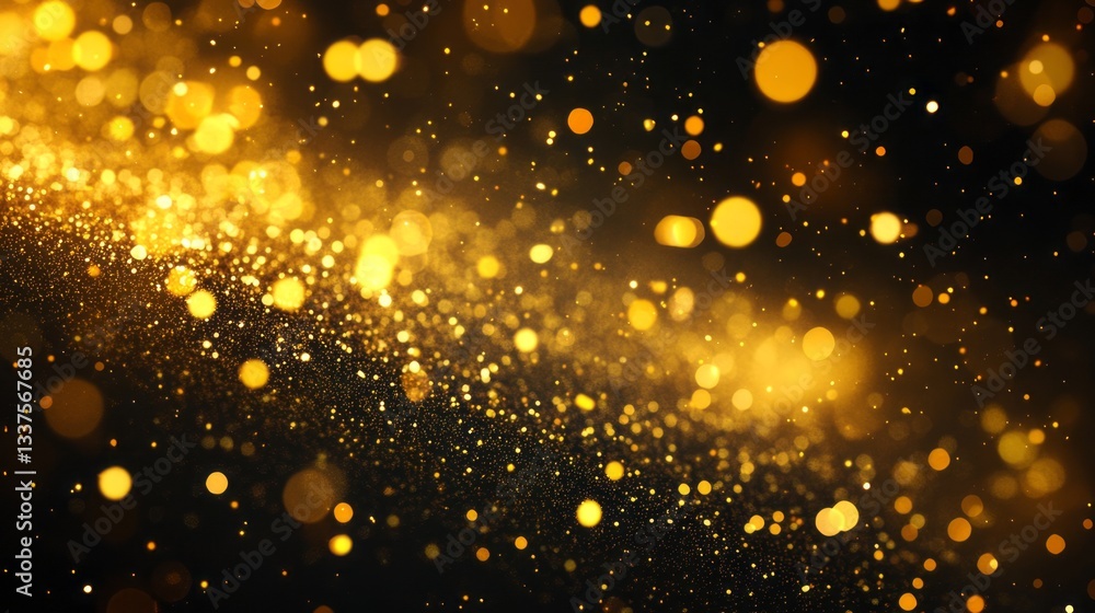 Wall mural : Abstract golden glitter background with bright sparkles and shimmering light particles creating a lu