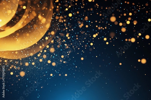 Wall mural : Abstract golden glitter lights on a dark backdrop creating a festive and enchanting bokeh effect